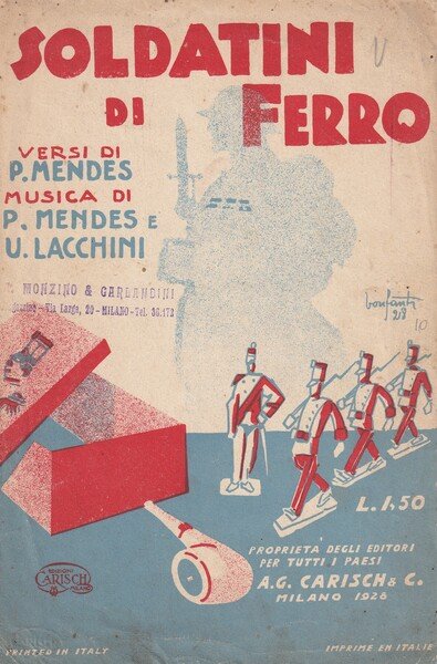 Spartito: SOLDATINI DI FERRO. Versi di Mendes, musica di Mendes e Lacchini. Ed. Carisch.