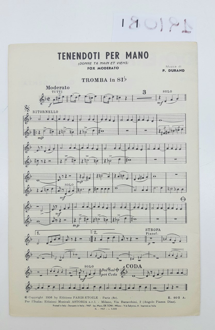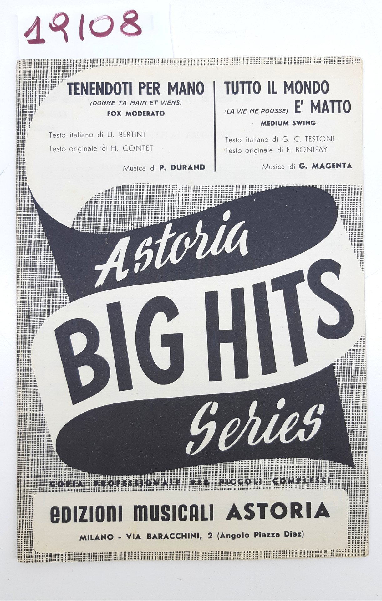 Spartito Tenendoti per mano Tutto il mondo è matto Astoria Big Hit Series edizioni musicali Astoria 1956