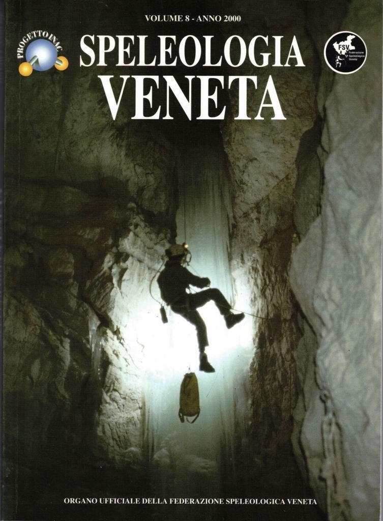 Speleologia veneta, n. 8, 2000, s.n., s.l. (ma stampato ad Arcugnano, presso la Tipolitografia Campisi srl) 2000, pp. IV, 220, ill. b.n. e col., cm 23, br. ed. In calce al frontespizio: Organo ufficiale della Federazione Speleologica Veneta. Indice: F. Maglich, Pollice alto per la speleologia veneta – G. Marchetto, La speleologia c’è anche se non si vede – Id., Regione Veneto-Fsv: un patto per la tutela dell’ambiente – C.r.d. Inac, La Fsv alla IV Conferenza Nazionale delle Agenzie Ambientali – G. Boccalon, Didattica dell’Educazione Ambientale – Premio di speleologia Gianni e Mauro, a cura del Club Speleologico Proteo – F. Dal Cin, Concorso fotografico – G. Boccalon, È nata la Commissione Fotografica della Fsv – G. Marchetto, Il laboratorio didattico A. Saccardo – F. Dal Cin, Catasto supporti didattici e divulgativi – R. Trevisiol, El Barbastrio dei Berici – G. Marchetto, Cambio al vertice del Proteo – F. Bassani, I rinvenimenti archeologici nel Cogol de Secia – A. Riva, Risultati preliminari di una sezione sismica a rifrazione in un’area carsica – U. Tundo, Relazione tecnico-scientifica sulla Operazione Ecogrotta – B. Pellegrini, Operazione pulizia della Spluga Carpene – M. Burato, D. Cecchin, Nella tana del topo – L. Dal Molin, M. Lazzarotto, Moonmilk negli altipiani del Sennes e del Fosses – L. Marzot et al., Le prime esplorazione della voragine Giacominerloch – M. Salogni, Piani Eterni 1995-99 – P. Gasparetto, Bo’ de Pavei. E l’inizio fu la catastrofe – V. Toniello, Il Lamaraz – M. Lazzarotto, Marcesina e le sue torbiere – M. Da Meda, Speleosub per caso – A. Formalè, B. Minciotti, D. Rossi, Alascai ’98: speleologia glaciale in Alaska – E. Anzanello et al., Qualcosa di nuovo in Genziana – M. Tommasi, A. Oro, Abisso dei Colli Vecchi – F. Ferrarese, R. Sordi, Distribuzione delle cavità ipogee nella provincia di Treviso – D. Zanon, Note di biospeleologia montelliana. Miriapodi – E. Piva, Le ricerche del C.s. Proteo di Vicenza sulla fauna sotterranea – G. Caoduro, Primi risultati del Progetto Italaphaenops – Lettere al direttore – P. Mietto, Le maggiori cavità venete – Id., VIII aggiornamento catastale. Perfetto.