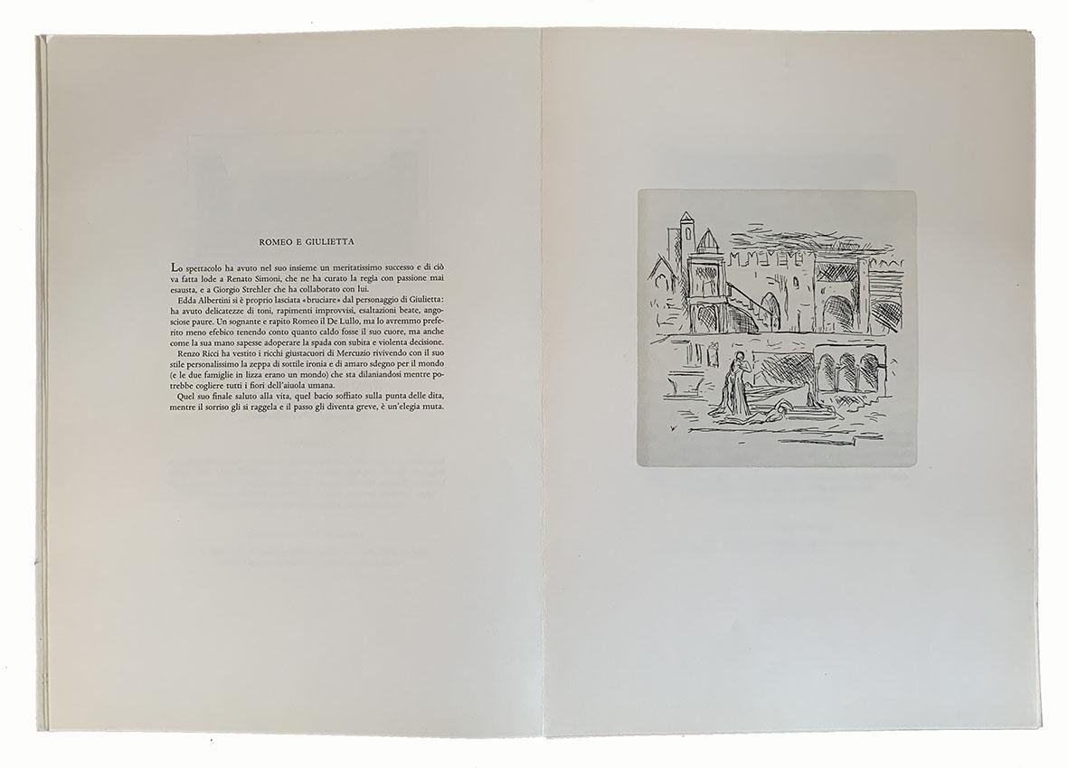 In folio (mm 345x245); pp. [96]. Fogli sciolti riportanti la descrizione degli spettacoli e l'elenco degli interpreti, corredati di 22 acqueforti originali di Pino Casarini. Brossura a carpetta con alette. Lievissime fioriture e minime mancanze al margine esterno inferiore. Esemplare di edizione stampata in 400 copie curata da G. Gambato.