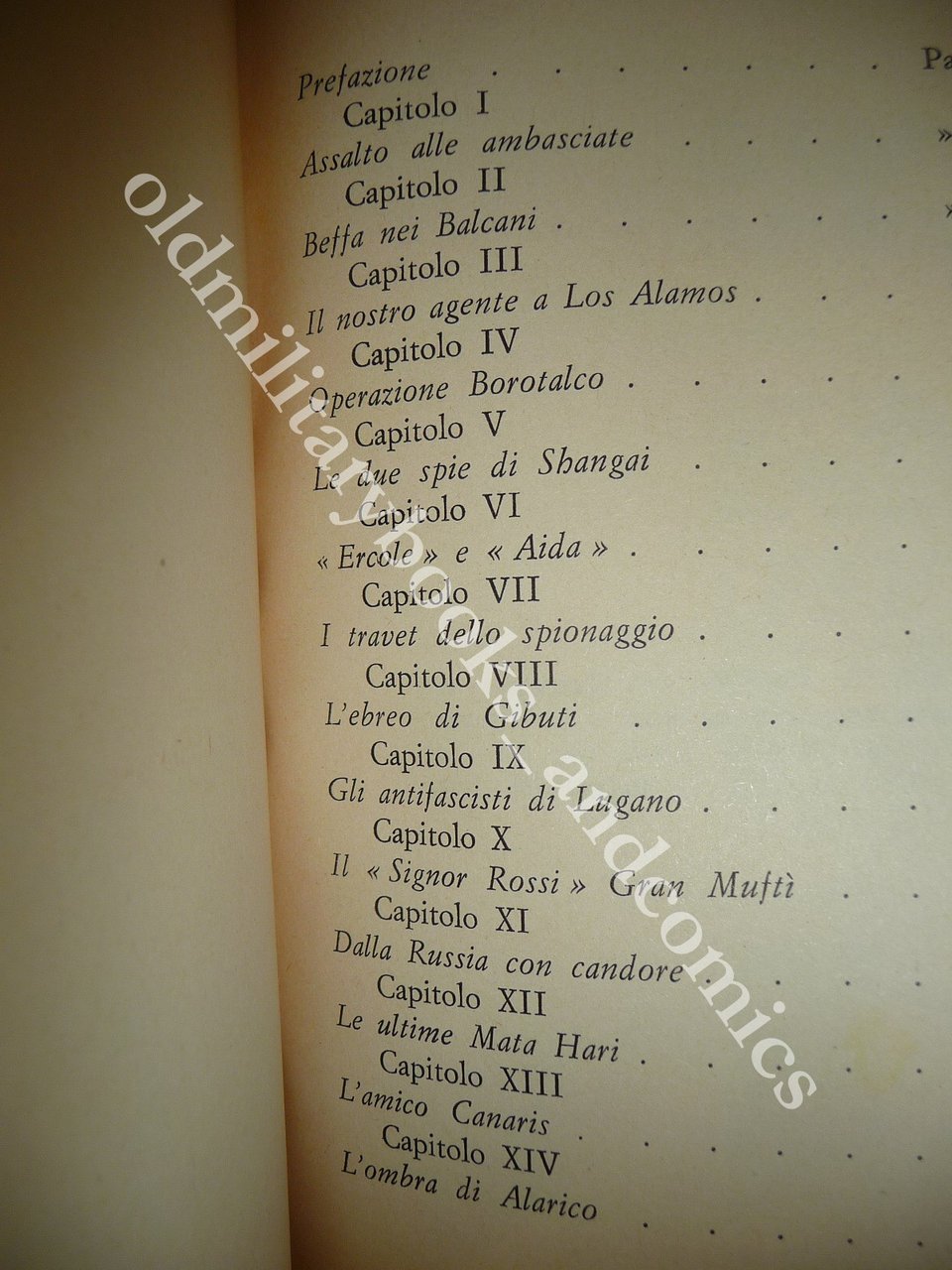 L'opera racconta la storia degli agenti segreti italiani durante la Seconda Guerra Mondiale, descrivendo le loro operazioni, missioni e il funzionamento dei servizi segreti italiani (SIM) in quel periodo. Il libro è corredato da numerosi dettagli operativi e aneddoti, offrendo una panoramica sul mondo dello spionaggio "made in Italy".La prefazione è firmata dal generale Cesare Amè, capo del SIM durante la guerra, il che garantisce un profilo autorevole e la conferma dell'importanza storica dell'opera. È un testo di riferimento per chi studia la storia militare e lo spionaggio italiano.