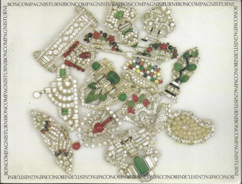 Catalogo In-16° formato album, legatura in brossura editoriale, con 40 tavole fuori testo a colori di spille dal 1915 al 1935.