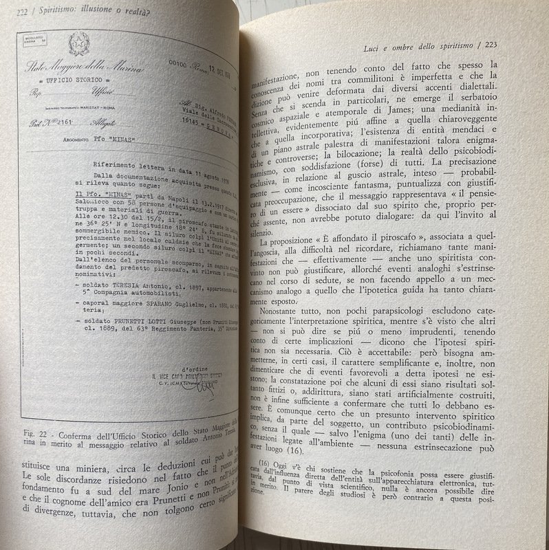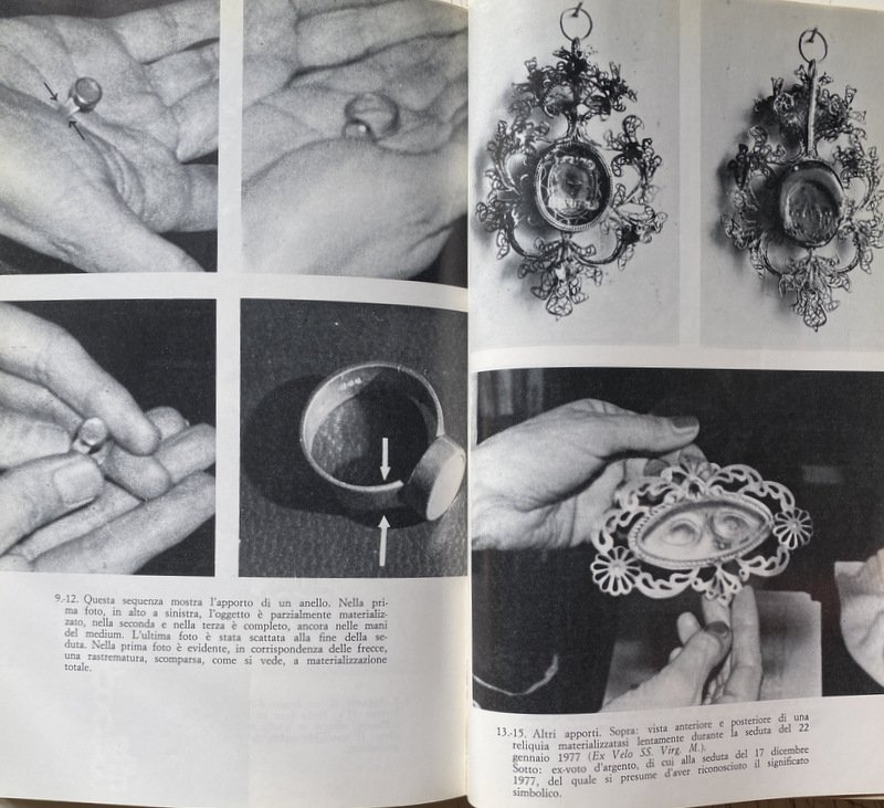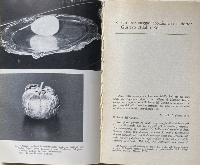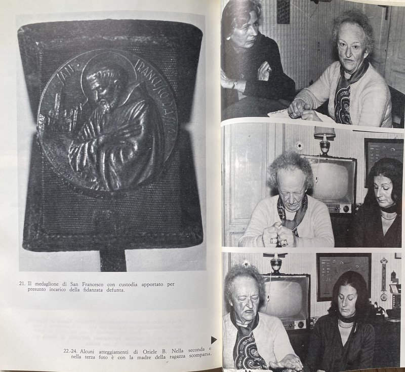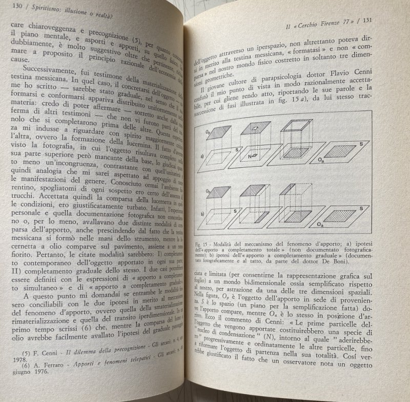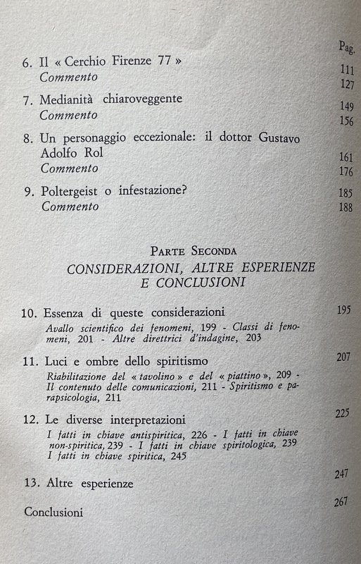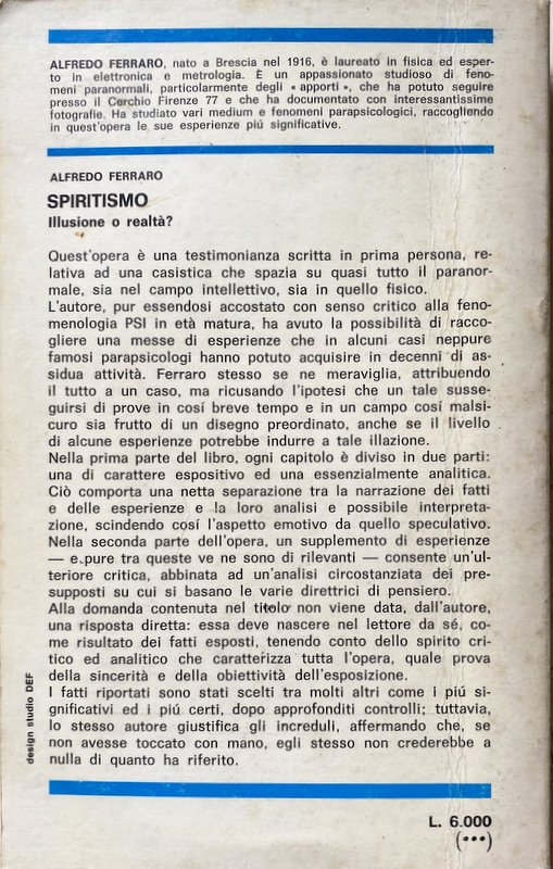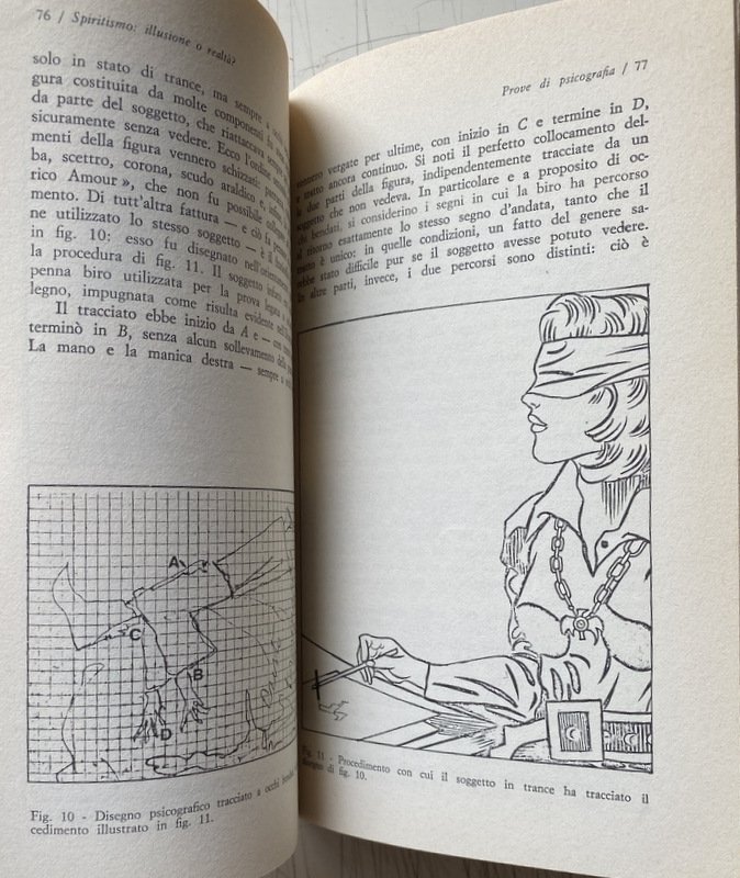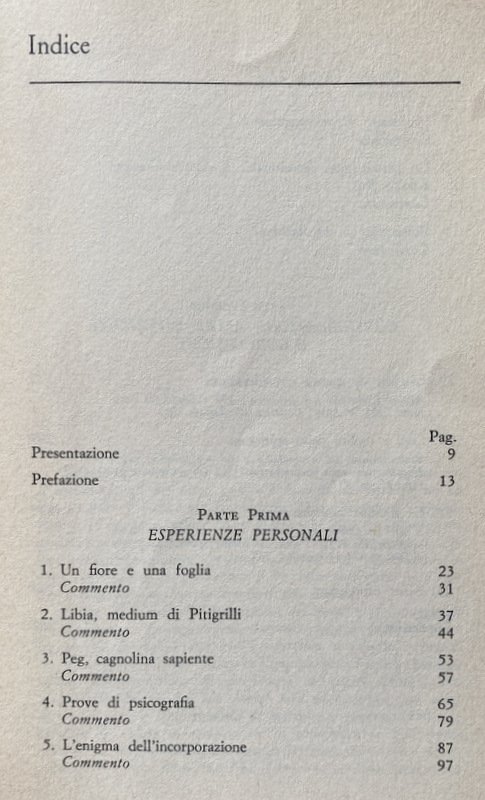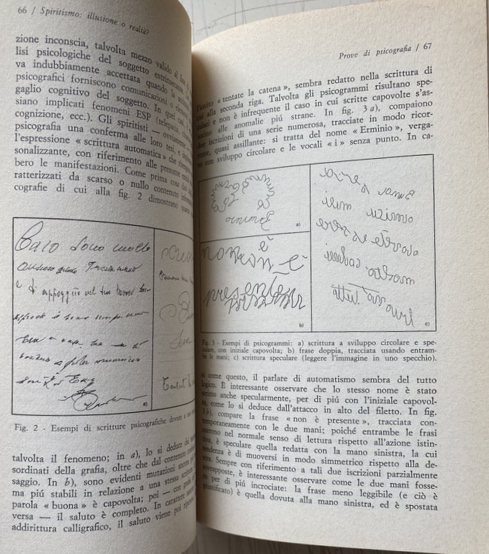 Soggetti: Spiritismo, Parapsicologia, Paranormale, Psicografia, Fenomeni inspiegabili e paranormali, Medianità, Occultismo, Psicologia, Inconscio, Studi parapsicologici, Poteri, Fenomeni psichici, Sensazioni, Visioni, Sogni, Coincidenze, Intuizioni, Allucinazioni, Spiritualità, Facoltà psichiche, Tecniche, Ipnosi, Meditazione, Filosofia, Mistero, Psicocinesi, Mente, Materia, Poltergeist, Telepatia, Percezione extrasensoriale, Scienza, Viaggio dell'anima, Vita dopo la morte, Reincarnazione, Morti, Aldilà, Medium, Comunicazione, Corpo, Spirito, Esoterismo, Occulto, Bestsellers, Manuali, Guide pratiche, Letteratura scientifica, Esperienze personali, Prove, Trance, Sedute spiritiche, Oggetti, Spostamento, Allucinazioni, Spiegazioni, Terminologia, Esperimenti, Bibliografia, Riferimento, Collezionismo, Libri Vintage fuori catalogo, Memoria, Interpretazione, Simbolismo, Segni, Segnali, Voci, Religione, Miti, Credenze, Fede, Esorcismo, Filosofia, Cattolicesimo, Dio, Identificazione, Potenza psichica, Misteri, Testimonianze, Cerchi medianici, Cerchio Firenze 77, Cerchio Esseno, Roma, Vita vissuta, Esperimenti, Morire, Profezie, Colloqui, Altra Dimensione, Rinascere, Energia, Milan Ryzl, Massimo Biondi, Seth, Castello di Millesimo, Uri Geller, Pitigrilli, Enigmi, Spiritisti, Incorporazione, Chiaroveggenza, Gustavo Adolfo Rol, Infestazione, Fantasmi, Tavolino, Piattino, Candela, Interpretazioni, Critiche, Confutazioni, Disegni, Scritture psicografiche, Immagini, Specchio, Scrittura automatica, Grafia, Grafologia, Imposizione, Mani, Allan Kardec, A. Ferraro, G. Guénon, E. Bozzano, C. Cassoli, G. De Boni, Ugo Dèttore, R. Miller Dewitt, Libia Martinengo, L. Occhipinti, E. Servadio, Suor Candida, P. Sacripanti, Buddha, Dino Buzzati, R. Sudre, Anceschi, Amilcare, Piero Angela, P.A.M., Dirac, G.P. Durand de Gros, Einstein, Equo, Mussolini, Galeazzo Ciano, Enrico Fermi, Uri Geller, Sorelle Fox, I. Giordano Corridori, Massimo Inardi, Kempis, Goethe, Lombroso, R. Lugli, Maria José, M.A.P., E. Servadio, G.A. Rol, Schelling, Schopenhauer, Peg, R. Sudre, Madre Teresa di Calcutta, Wagner, Apparizioni, Animismo, Vedanta, Bicchierino, Aneddotica, Iniziazione, Apporti, Asporti, Ascesi, Effetto Barkhausen, Catena medianica, Sdoppiamento, Personalità, Bilocamento, Messaggio, Gesp, Finalismo, Eterno, Domande, Estasi, Futuro, Impregnamento psichico, Infestazioni, Impronte, Teoria di Maxwell, Magnetismo, Materializzazione, Incorporazione, Misticismo, Onde gravitazionali, Osmosi, Metempsicosi, Personificazione, Precognizione, Reincarnazione, RSPK, Ritorno, Seduta, Trillo del Diavolo, Vista extraoculare, Telescrittura, Yoga, Veda, Subconscio, Spiritologia, Sopravvivenza, Anello, Oriel B., Defunti, Attrazione, Oggetti metallici, Monete, Bottiglia, Bicchiere, Uovo d'alabastro, Piatto, Beonio-Brocchieri, Clauzure, Dino Segre, Prestidigitazione, Federico Fellini, CICAP, Tullio Regge, Carte da gioco, Lettura in libri chiusi, Mentalismo, Spiritism, Parapsychology, Paranormal, Psychography, Unexplained and paranormal phenomena, Mediumship, Occultism, Psychology, Unconscious, Parapsychological studies, Powers, Psychic phenomena, Sensations, Visions, Dreams, Coincidences, Intuitions, Hallucinations, Spirituality, Psychic faculties, Techniques, Hypnosis, Meditation, Philosophy, Mystery, Psychokinesis, Mind, Matter, Telepathy, Extrasensory perception, Science, Soul travel, Life after death, Reincarnation, Dead, Afterlife, Communication, Body, Spirit, Esotericism, Occult, Manuals, Practical guides, Scientific literature, Personal experiences, Evidence, Trance, Sance, Objects, Displacement, Hallucinations, Explanations, Terminology, Experiments, Bibliography, Reference, Collectables, Discontinued books, Memory, Interpretation, Symbolism, Signs, Signals, Rumors, Religion, Myths , Beliefs, Faith, Exorcism, Philosophy, Catholicism, God, Identification, Psychic power, Mysteries, Testimonies, Mediumistic circles, Florence circle, Rome, Lived life, Experiments, Dying, Prophecies, Talks, Other dimension, Reborn, Energy, Castle, Enigmas, Spiritualists, Incorporation, Clairvoyance, Haunting, Ghosts, Coffee Table, Saucer, Candle, Interpretations, Criticisms, Refutations, Drawings, Psychographic writings, Images, Mirror, Automatic writing, Handwriting, Graphology, Imposition, Hands, Apparitions, Animism, Shot glass, Anecdotal, Initiation, Additions, Take away, Ascended, Medium chain, Doubling, Personality, Bilocation, Message, Finalism, Eternal, Questions, Ecstasy, Future, Psychic impregnation, Infestations, Footprints, Magnetism, Materialization, Incorporation, Mysticism, Waves Gravitational, Osmosis, Metempsychosis, Personification, Precognition, Reincarnation, Return, Seance, Devil's Trill, Extraocular Sight, Teletext, Subconscious, Spiritology, Survival, Ring, Deceased, Attraction, Metal Objects, Coins, Bottle, Glass, Alabaster Egg, Dish