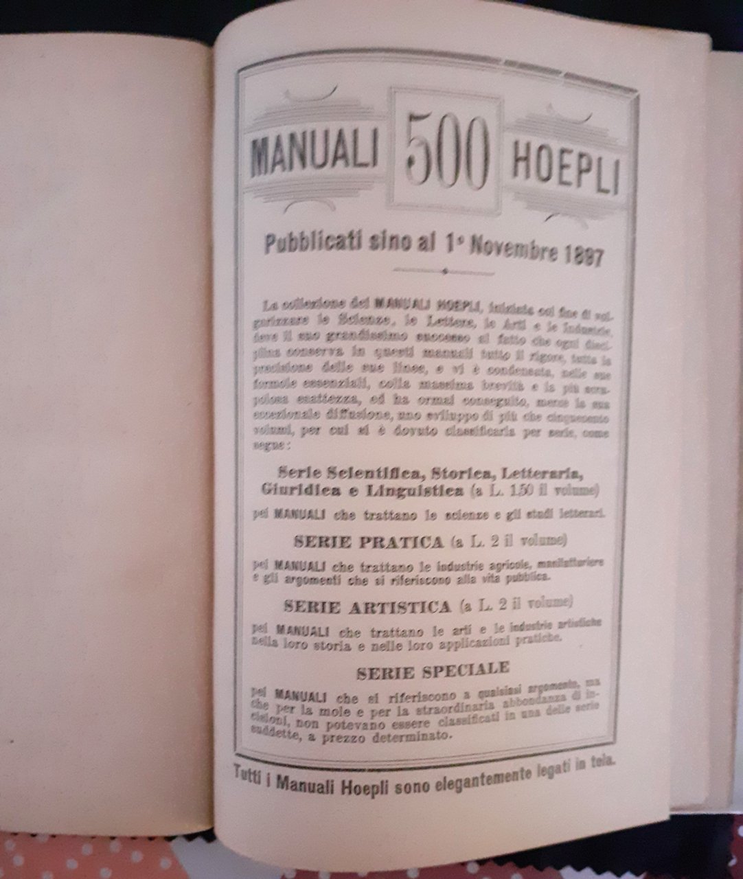 - Hoepli, Milano, 1898. Manuali Hoepli.
