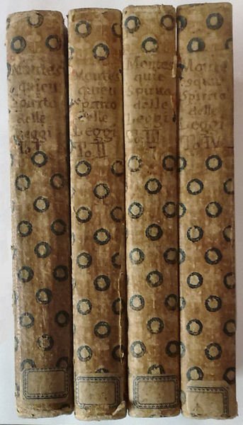 4 vol. in 12, antip. f.t. con ritr. dell'a. e 1 tav. f.t. con ritratto del Genovesi, entrambe incise da S. Giampiccoli; p. XVI - 364 (omesse le p. 161-164, errori di paginazione da p. 289 in poi), XV [ma XVI] 319 [1 b.], XVI - 310 [1 c. b.], 366 [1 c. b.] (collazione identica ad es. in ICCU), caratteristica cartonatura (xilografata) coeva con tass. di carta al dorso, lievi fioriture dovute al tipo di carta ma es. in ottimo stato di conservazione, ad ampi margini. Cat. Einaudi n. 3997. - In ICCU sono censite due tirature di questa edizione originale che si differenziano per l'accuratezza della numerazione delle pagine; anche sul mercato antiquario si rintracciano due diverse descrizioni bibliografiche di quest'opera sia per il numero di pagine che per il nome dell'incisore.
