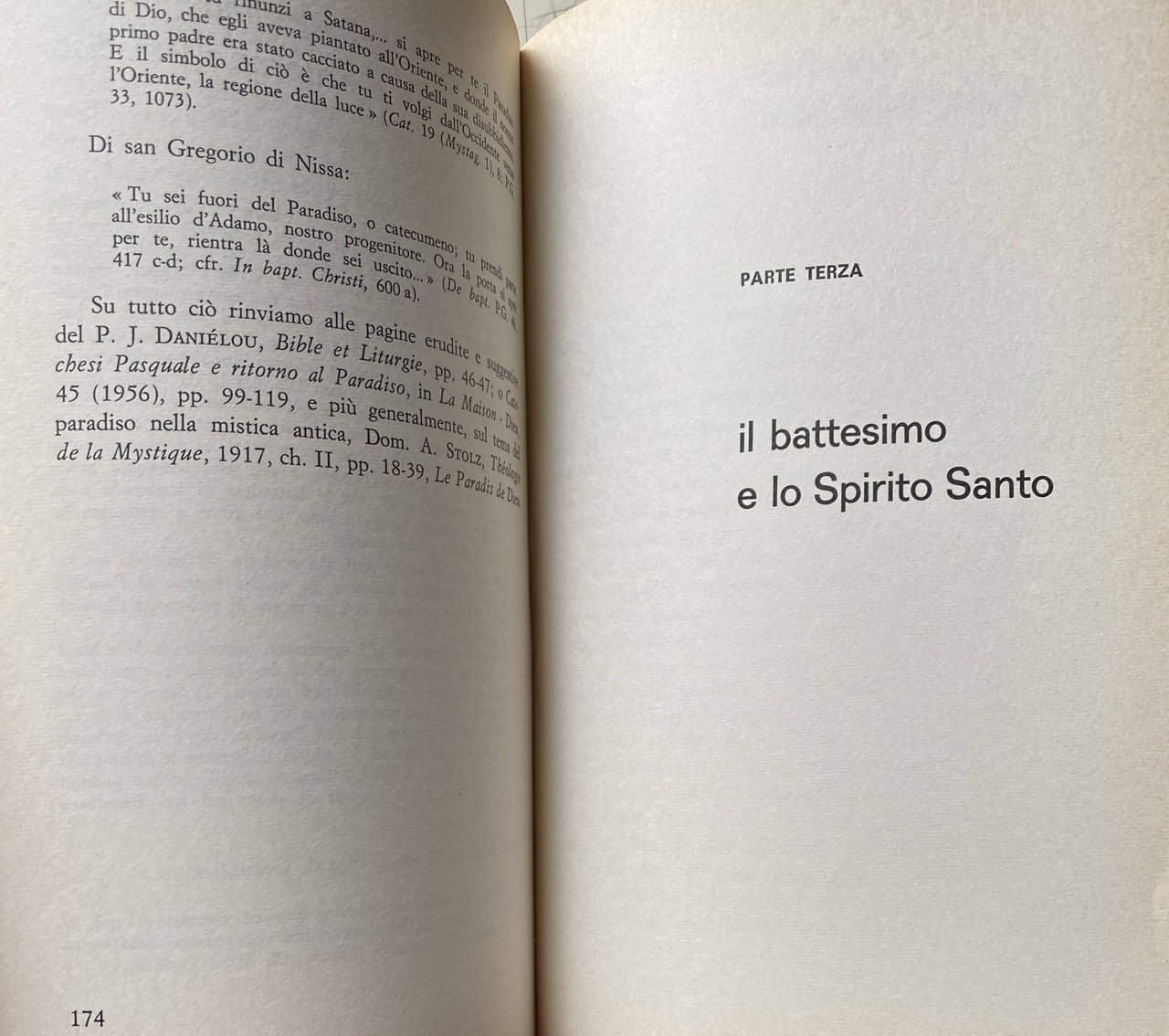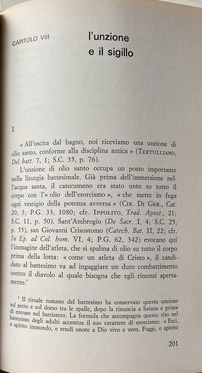 Soggetti: Liturgia, Catechesi, Mistagogia, Battesimo, Chiesa, Sacramenti, Battezzati, Mistica, Padri, Patristica, Unzione, Dio, Teologia, Cristianesimo, Cattolicesimo, Saggi teologici, Libri rari Vintage fuori catalogo, Critica, Contemplazione, Mistero, Beatificazione, Celebrazione, Unione, Clemente d'Alessandria, Esegesi biblica, Bibbia, Tradizione, Jean Daniélou, Confermazione, Bapteme, Cresima, Spirito Santo, Burkhard Neunheuser, Johann Georg Hamann, Scrittura, S. Gregorio Nazianzeno, Fede, Sant'Agostino, Spiritualità, Ecclesiologia, Adolphe Tanquerey, Ascetica, Colpa, Peccato, Rinnovamento, Apostolato, Resurrezione, Laici, Sacerdozio, Riti cristiani, Rituali, Celebrazione, Acqua santa, Bibliografia, Riferimento, Dono, Grazia, Vie chrétienne, Livres Religion Sacrements, Pastorale, Preghiera, Imposizione delle mani, Sacerdote, Eucaristia, Penitenza, Gesù Cristo, Uomo, Origene, Gregorio di Nissa, Purificazione, Illuminazione, L. Bouyer, L. Villette, Remissione, San Paolo, Tommaso d'Aquino, Fonte battesimale, Fidei Sacramentum, Abramo, Oscar Cullmann, Atanasio, Atti, Apostoli, Girolamo, Concilio di Trento, Sigillo, Alleanza, Circoncisione, Simbolismo, Tempio, Verbo, D. Mollat, Lettere, Ebrei, Romani, Ebraismo Giovanni Crisostomo Luce Anselm Stolz Messa Morte Nascita Tertulliano Vita Pasqua San Pietro Giudei Cirillo Ambrogio Yves Congar Esorcismo Olio Coppa Cantico Abba Padre Rinuncia Diavolo Satana Sant'Ireneo Evangile Vangeli Matteo Luca Giordano Fiume Mysterion Paradiso André Feuillet Catechesi Collezionismo Liturgy Catechesis Mystagogy Baptism Church Sacraments Baptized Mystic Fathers Patristics Anointing God Theology Christianity Catholicism Theological essays Rare books out of print Criticism Contemplation Mystery Beatification Celebration Clement of Alexandria Biblical exegesis Bible Tradition Confirmation Confirmation Holy Spirit Scripture St. Gregory Nazianzen Faith St. Augustine Spirituality Ecclesiology Ascetic Guilt Sin Renewal Apostolate Resurrection Laity Priesthood Christian rites Rituals Celebration Holy water Bibliography Reference Gift Grace Prayer Laying on of hands Priest Eucharist Penance Jesus Christ Man Origen Gregory of Nyssa Purification Illumination Remission Saint Paul Thomas Aquinas Baptismal font Abraham Athanasius Acts Apostles Jerome Council Seal Covenant Circumcision Symbolism Temple Word Letters Jews Romans Judaism John Chrysostom Light Mass Death Birth Tertullian Life Easter Saint Peter Jews Cyril Ambrose Exorcism Oil Cup Canticle Father Renunciation Devil Satan Saint Irenaeus Gospels Matthew Luke River Paradise Catechesis Collectibles