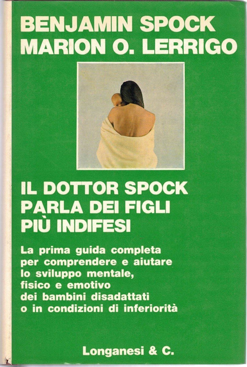 Benjamin Spock, Marion O. Lerrigo, Il dottor Spock parla dei figli più indifesi, traduzione di Marisa Sughi, prefazione e adattamento di Umberto Dell’Acqua, Longanesi e C., Milano 1971, pp. 569, cm 19, cart. ed. con titoli al dorso, taglio superiore spruzzato di blu, sovraccoperta e segnalibro in tessuto. Collana La nostra via, vol. 86. Titolo originale: Caring for your disabled child. Al piatto anteriore: La prima guida completa per comprendere e aiutare lo sviluppo mentale, fisico e emotivo dei bambini disadattati o in condizioni di inferiorità. Lievissime tracce d’uso alla sovraccoperta, tenue brunitura della carta, per il resto perfetto.