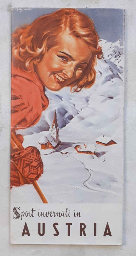 Pieghevole di 36 facciate (24 di cm. 10 x 10 e altre 12 di cm. 21 x 10); con una carta dell'Austria a due colori, illustraz. fotograf. in nero e disegni a colori; copertina con vivace e bella illustraz. grafica a colori.