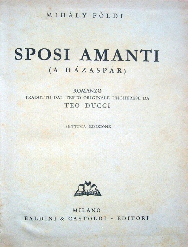 Sposi amanti (A házaspár). Romanzo. Tradotto dal testo originale ungherese da Teo Ducci. Settima edizione