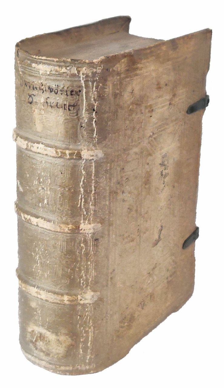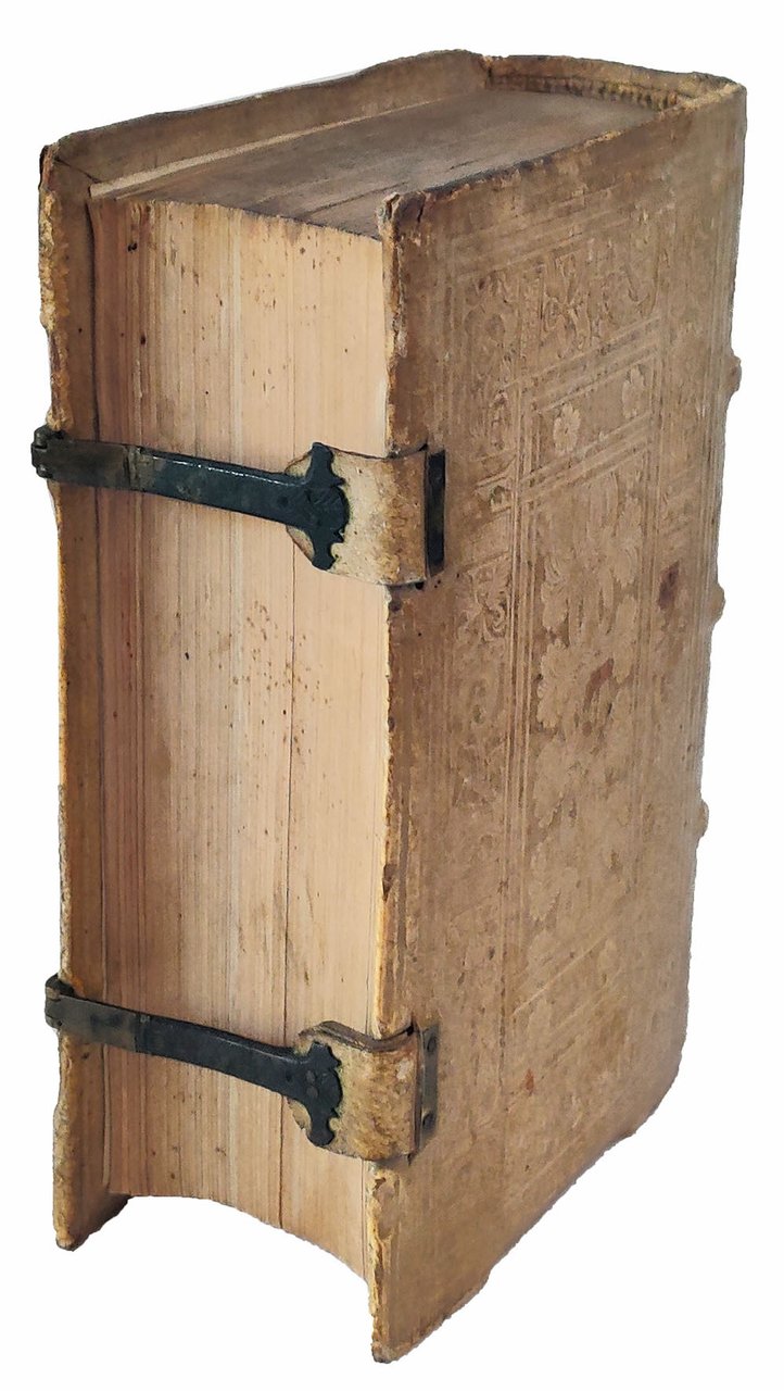 Two parts in one volume, 8vo (153x100 mm). [8], ccxlvii, [1 blank]; [4], cxcii leaves. Collation: *8 a-z8 A-H8; †4 aa-zz8 Aa8. Leaf H8 is a blank. Contemporary blind-tooled pigskin over wooden boards dated 1558 and signed with the initials “A.K.” (repeated in manuscript at the bottom of the title page), two clasps preserved (slightly soiled, spine rubbed). Stamp of “Menno P.W. de Limburg” on the front pastedown and flyleaf. A superb copy with some contemporary annotations and underlining in brown ink.