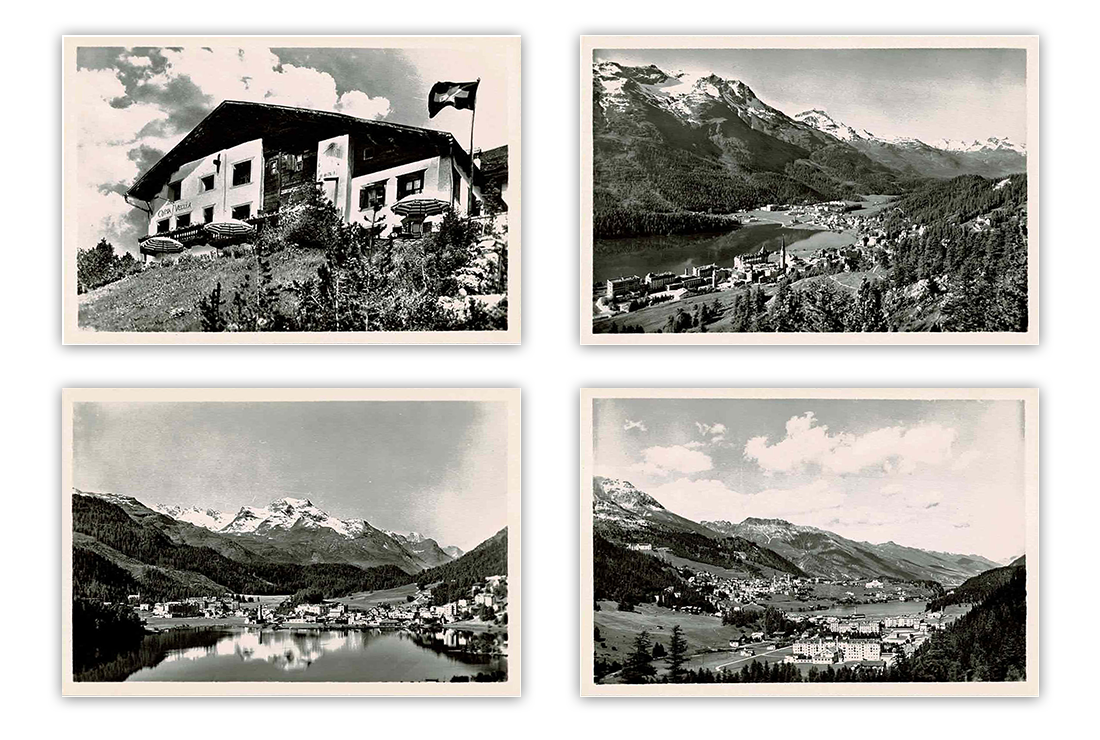 1) Chesa Veglia 2) St.Moritz-Dorf und Bad 3) St.Moritz Bad - lago panorama 4) St.Moritz -Bad und -Dorf Serie di numero 4 Vecchie Fotografie originali come da fotodimensioni singola fotografia cm 9 x 6 c.a.