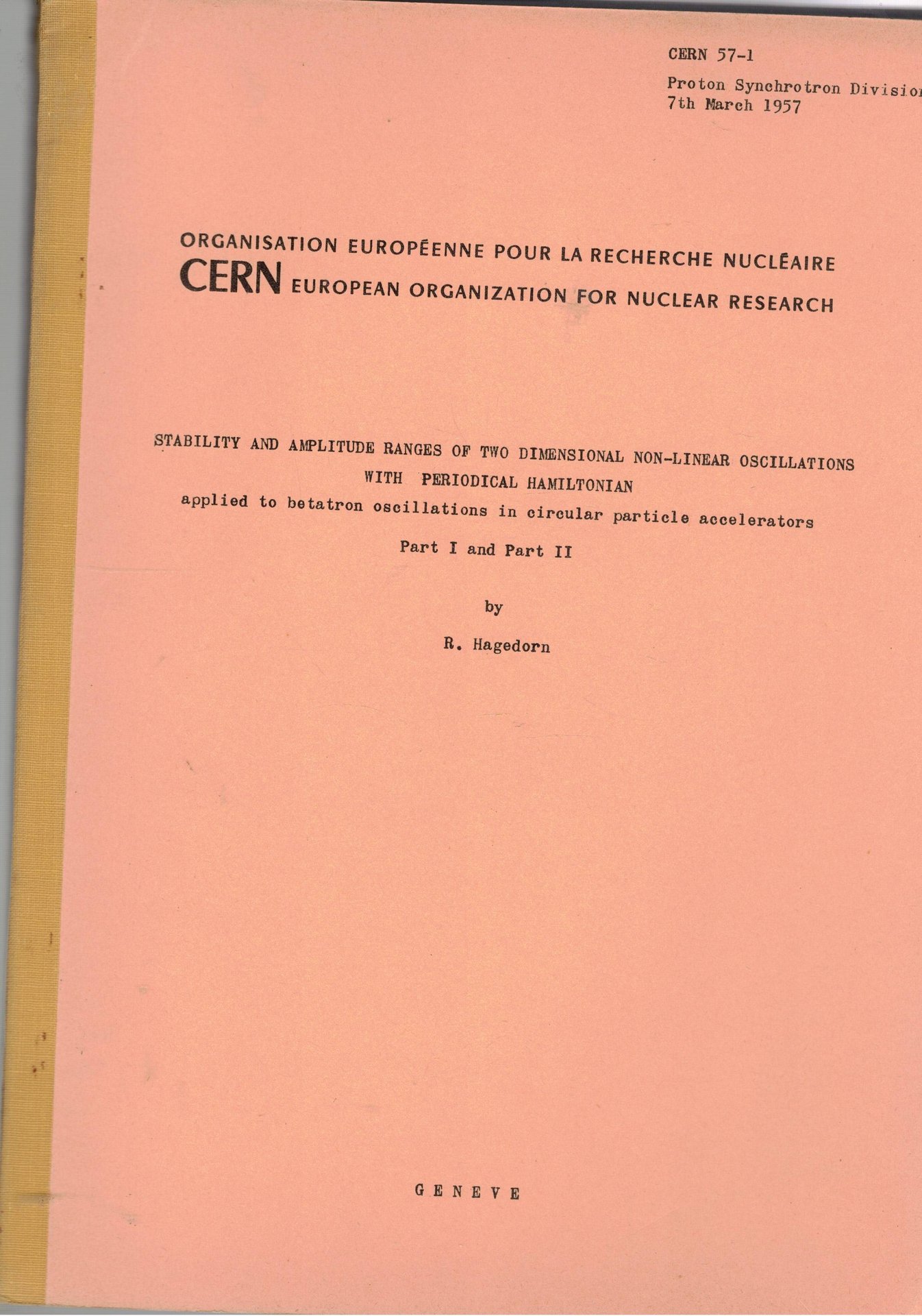 Stability and amplitude ranges of two dimensional non-linear oscillations with periodical hamiltonian applied to betatron oscillation in circular particle accelerator. Part I° e II°.