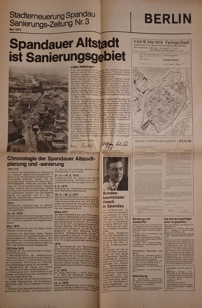 Stadterneuerung Spandau. Sanierungs-Zeitung Nr. 3, Mai 1978.