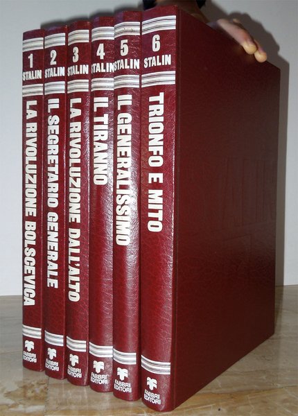 Sei voll. in-4°, pp. complessive 1505, più indici (numerazione continua), legatura editoriale con titoli impressi al piatto anteriore e in bianco al dorso. Con centinaia di illustrazioni nel testo, anche a piena e doppia pagina. Nel volume 4°, il quarto e il quinto fascicolo, con le pagine 828-852, presentano errori di rilegatura, con conseguenti salti nella numerazione: il testo è però assolutamente completo. Anche nel volume 6°, l'ultimo fascicolo, di 20 fogli, ospitante l'indice, brevi schede bibliografiche dei personaggi citati nel testo, le cronologie, la bibliografia e l'indice generale, è stato rilegato male: le quattro pagine con l'indice, che avrebbero dovuto trovarsi subito dopo l'ultimo fascicolo ospitante il testo (composto di 12 fogli, che si conclude con pagina 1476) risultano infatti postposte. Per il resto, ben conservato. L'opera si articola nel seguente modo: Vol. I. La rivoluzione bolscevica; Vol. II. Il segretario generale; Vol. III. La rivoluzione dall'alto; Vol. IV. Il tiranno; Vol. V. Il generalissimo; Vol. VI. Trionfo e mito.