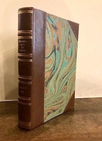 8vo (cm. 19), XII-337(1) pp. Con 100 illustrazioni a colori di scacchiere n.t. Frontespizio in rosso e nero con graziosa vignetta raffigurante una partita. Legatura recente in mz. pelle con angoli. Nervi, fili e titolo impresso in oro al ds. Tagli colorati. Carte di guardia marmorizzate. Alcune lievi fioriture, peraltro esemplare in ottimo stato di conservazione. Rara seconda edizione.