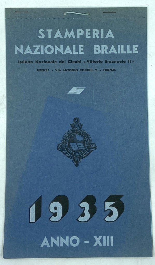 STAMPERIA NAZIONALE BRAILLE. Istituto Nazionale dei Ciechi «Vittorio Emanuele II» Firenze. 1935. (Calendario)