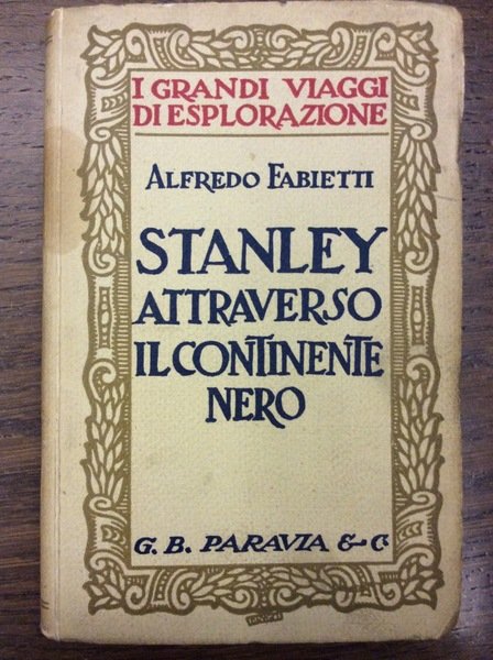 In-16 gr., cartoncino editoriale, pp. XI,236, con un ritratto di Stanley, una cartina geografica del suo viaggio (ripieg.) ed illustrato fuori testo da numer. tavv, di disegni in bianco e nero e a colori. Resoconto di un viaggio di quasi 4 anni (dal settembre 1874), un itinerario di oltre 11.000 miglia (da Zanzibar, sulle coste dell'Oceano Indiano, a quelle dell'Atlantico). Ben conservato.