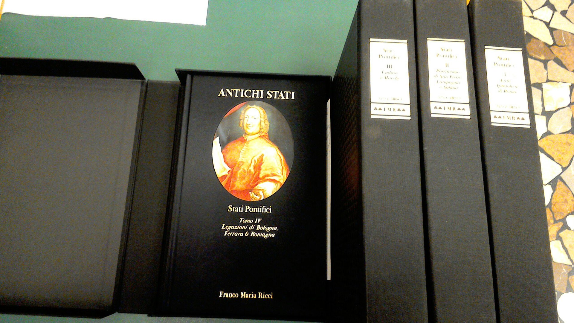 Contengono testi relativi allo Stato Pontificio tra il 1700 e il 1870. I volumi sono rispettivamente dedicati a: Città apostolica di Roma; Patrimonio di San Pietro, Campagna e Sabina; Umbria e Marche; Legazioni di Bologna, Ferrara e Romagna.