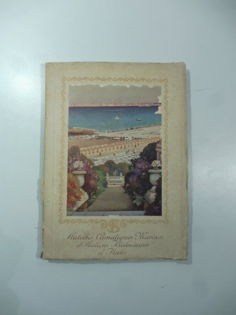 In 8, cm. 15,3 x 21, pp. 30 + (5) + 17 pagine pubblicitarie, con 25 tavole a colori fuori testo. Brossura editoriale con tavola illustrata applicata. Normali segni d'uso alla brossura, minime mancanze ai bordi della tavola applicata, danni riparati al dorso. Bruniture a piatti, contropiatti e al frontespizio. Piccolissime abrasioni alle pagine pubblicitarie, 4,5 e 8,9. Una guida a 25 Stazioni climatiche Marine e Balneari Italiane con altrettante vedute a colori. Precisamente di : Abbazia, Alassio, Bordighera, Brioni, Capri, Cattolica, Francavilla al Mare, Grado, Lido di Venezia, Nervi, Ospedaletti, Palermo, Portofino, Portorose, Rapallo, Riccione, Rimini, Santa Margherita Ligure, San Remo, Sestri Levante, Sorrento, Taormina, Varazze, Viareggio, Zara. Testo in francese.
