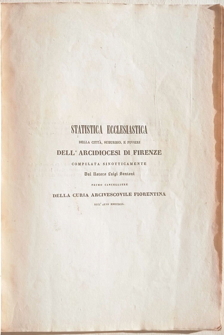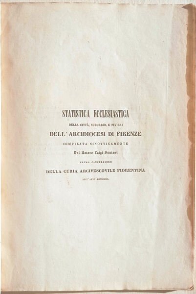 Statistica ecclesiastica della città, suburbio, e pivieri dell'Arcidiocesi di Firenze compilata sinotticamente [.].