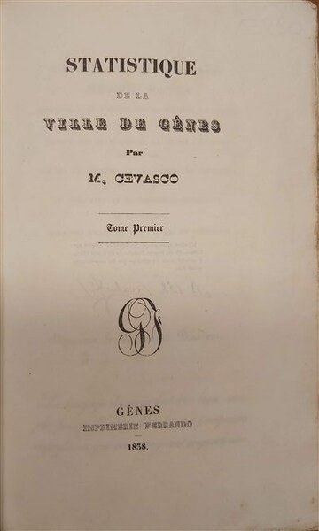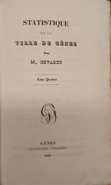 2 gr. voll. in-4, pp. (8), 420, (2); 618, (2), bella rileg. m. pelle mod. con doppio tass., fregi e tit. oro ai d. con nervi, angoli, piatti in carta dec., conservate all'interno le cop. orig. Con 10 tabelle ripiegate all'interno. Dedicat. a Giuseppe Manno, Senatore del Regno di Sardegna. Importante testo economico e statistico sulla città di Genova nell'Ottocento. La pubblicazione veniva venduta in pochissimi esempl. con l'aggiunta di 2 carte topografiche, la nostra copia non le possiede. Ediz. orig. Rara opera. Kress, Italian, 1030 (esempl. senza tavv.). Einaudi I, 161. Manno, VI, 23621. Ottimo esempl. in barbe. [039]