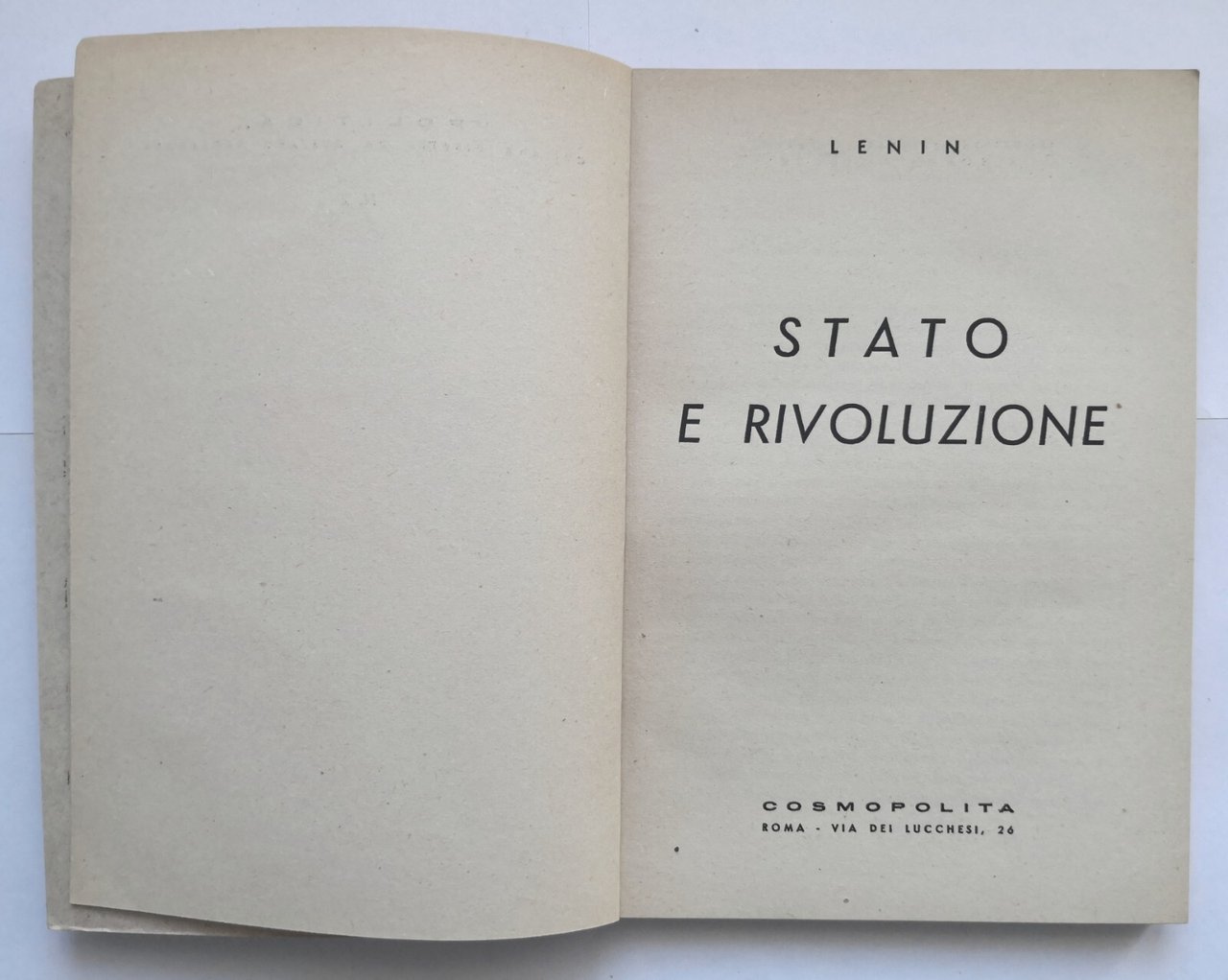 STATO E RIVOLUZIONE di Lenin 1943? Editore Cosmopolita collana politica libro