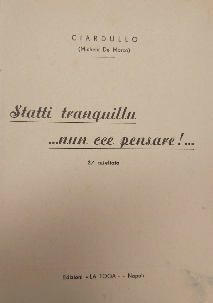 STATTI TRANQUILLU. nun cce pensare!. Secondo migliaio.