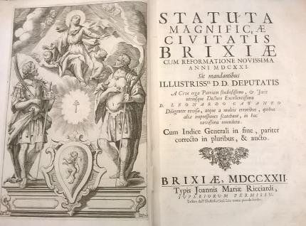 Statuta magnificae civitatis Brixiae cum reformatione novissima anni MDCXXI. Sic mandantibus Illustriss.is D. D. Deputatis a cive erga patriam studiosissimo & Juris utriusque Doctore Excellentissimo D. Leonardo Cataneo. Diligenter revisa, atque a multis erroribus, quibus aliae impressiones scatebant, in hac novissima emendata. Cum indice generali in fine, pariter correcto in pluribus, & aucto.