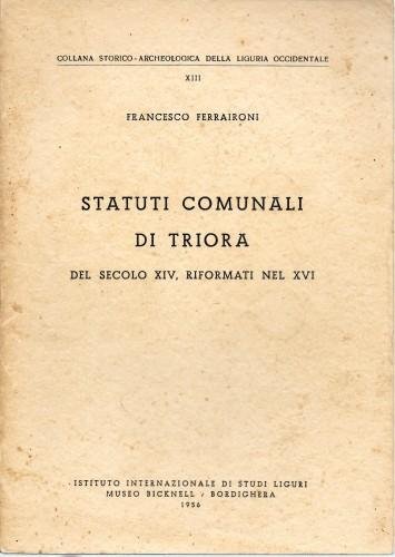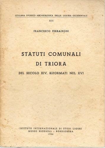 Statuti Comunali di Triora del secolo XIV, riformati nel XVI