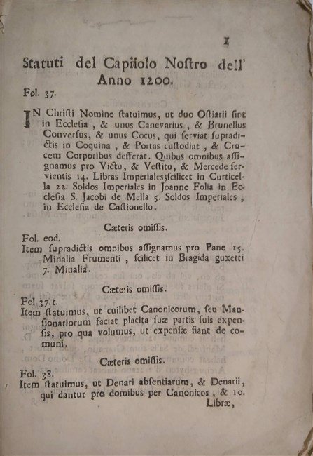 STATUTI DEL CAPITOLO NOSTRO DELL'ANNO 1200.