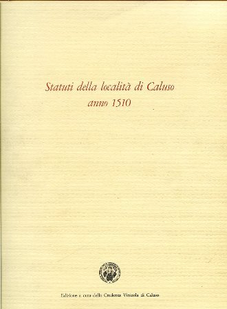 In-4°, pp. 105, (3), brossura editoriale con custodia con logo in rosso della Credenza Vinicola di Caluso. Frontespizio figurato. A fronte della traduzione italiana di Giacomo Mancuso sono riportati in facsimile i 51 fogli originali degli 'Statuta Loci Caluxii' del 1510. Perfetto stato. Tiratura di 999 esemplari numerati (n° 431) firmati dal Console Credenziario, Giorgio Salvetti, e dal Notaro della Credenza, Massimo Boux.