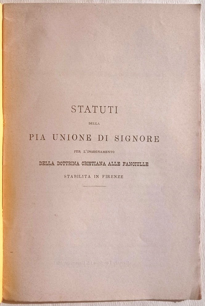 Statuti della Pia Unione di Signore per l'insegnamento della dottrina cristiana alle fanciulle stabilita in Firenze.