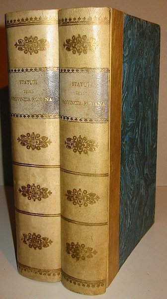 4to (cm. 26,4), XIV-448 pp. con 11 tavv. f.t. ripiegate. Frontis. in rosso e nero. (segue in altro volume) Federici V. (a cura di), Statuti della Provincia Romana. S.Andrea in Selci, Subiaco, Viterbo, Roviano, Anagni, Saccomuro, Aspra Sabina editi da R.Morghen, P.Egidi, A.Diviziani, O.Montenovesi, F.Tomassetti e Pierina Fontana, Roma, Tip. del Senato per l’Istituto Storico Italiano 1930, XX-580 pp. con 7 tavv. f.t. ripiegate. Entrambi i frontis. in rosso e nero. Entrambi i volumi in belle legature coeve in mz. pergamena con fregi e titoli oro su tassello al ds. Brossure ed. conservate all’interno. Edizioni su carta a mano in tiratura limitata di 350 copie (il primo vol., ns. esemplare 338) e di 365 copie (il secondo vol.). Ottimo esemplare in barbe e parzialmente a fogli chiusi.