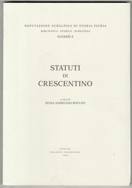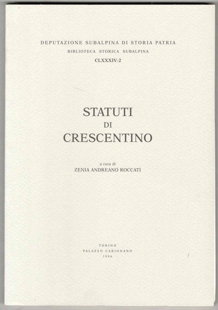 In 8°, pp. XXXI, 119. Brossura editoriale. Copia in stato di nuovo. Biblioteca storica subalpina, CLXXXIV - 2.