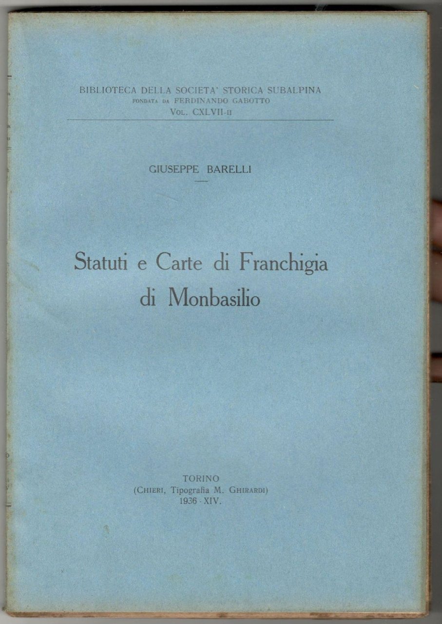 In 8°, pp. X, (4), 107, (5, 16 di catalogo editoriale). Brossura editoriale su carta verde (leggera ingiallitura ai bordi). Copia in buono stato, interamente a fogli chiusi. Biblioteca della Società Storica Subalpina, vol. CXLVI-II.