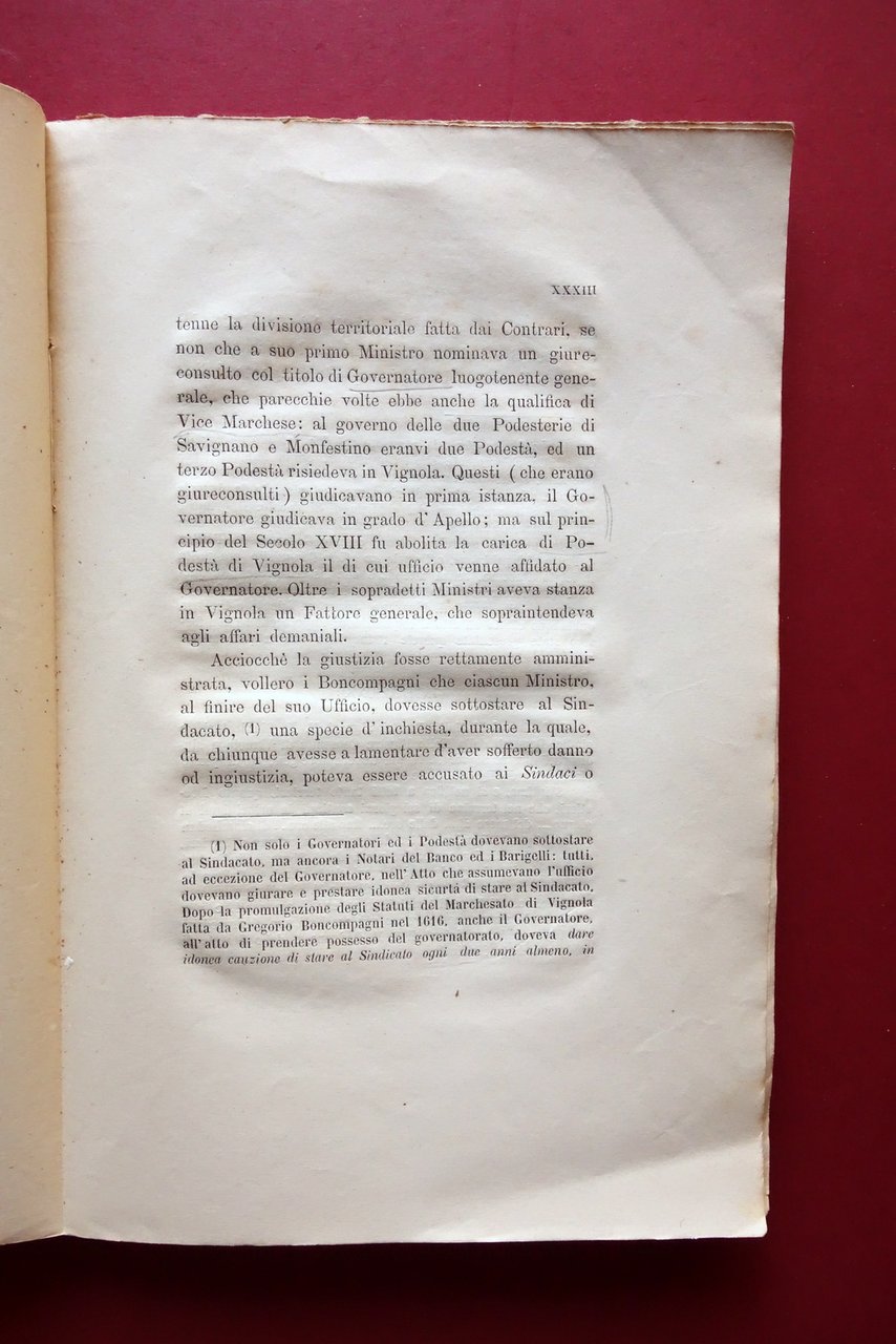 Statuti e Leggi per il Marchesato di Vignola Tip. Monti 1877 Originale Raro