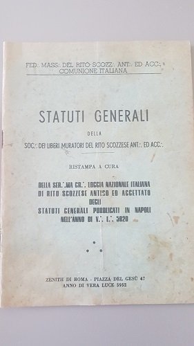 RISTAMPA A CURA DELLA SER. GR. LOGGIA NAZIONALE ITALIANA DI RITO SCOZZESE ANTICO ED ACCETTATO DEGLI STATUTI GENERALI PUBLICATI IN NAPOLI NELL' ANNO 5820