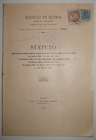 8vo (cm. 24), 38 pp. Bross. ed. Ottimo esemplare ufficiale completo di marche da bollo, timbri e firme di autentica su ciascun foglio.