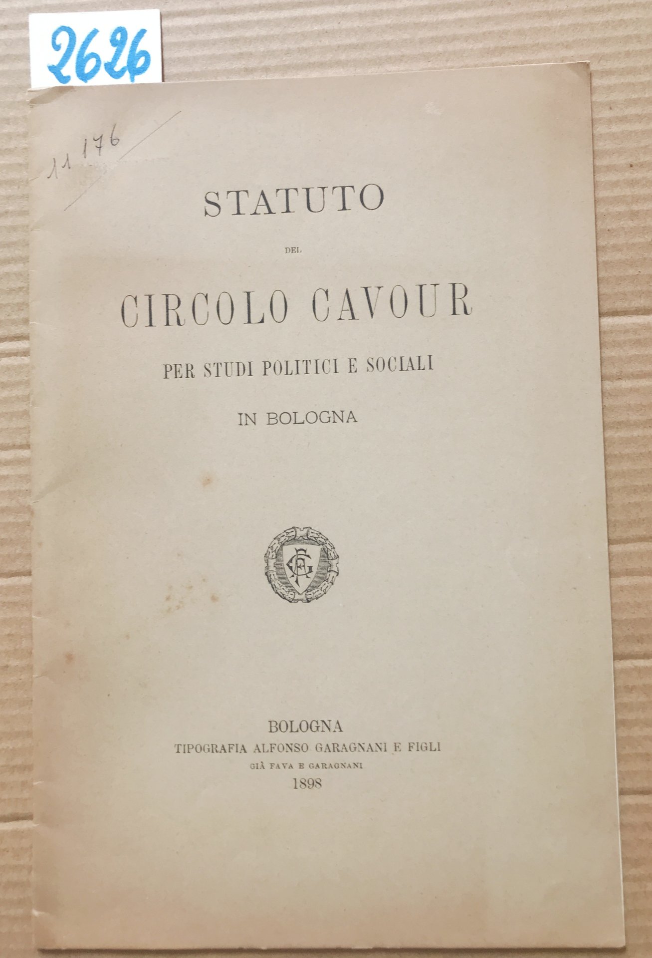 STATUTO DEL CIRCOLO CAVOUR PER STUDI POLITICI E SOCIALI IN BOLOGNA.