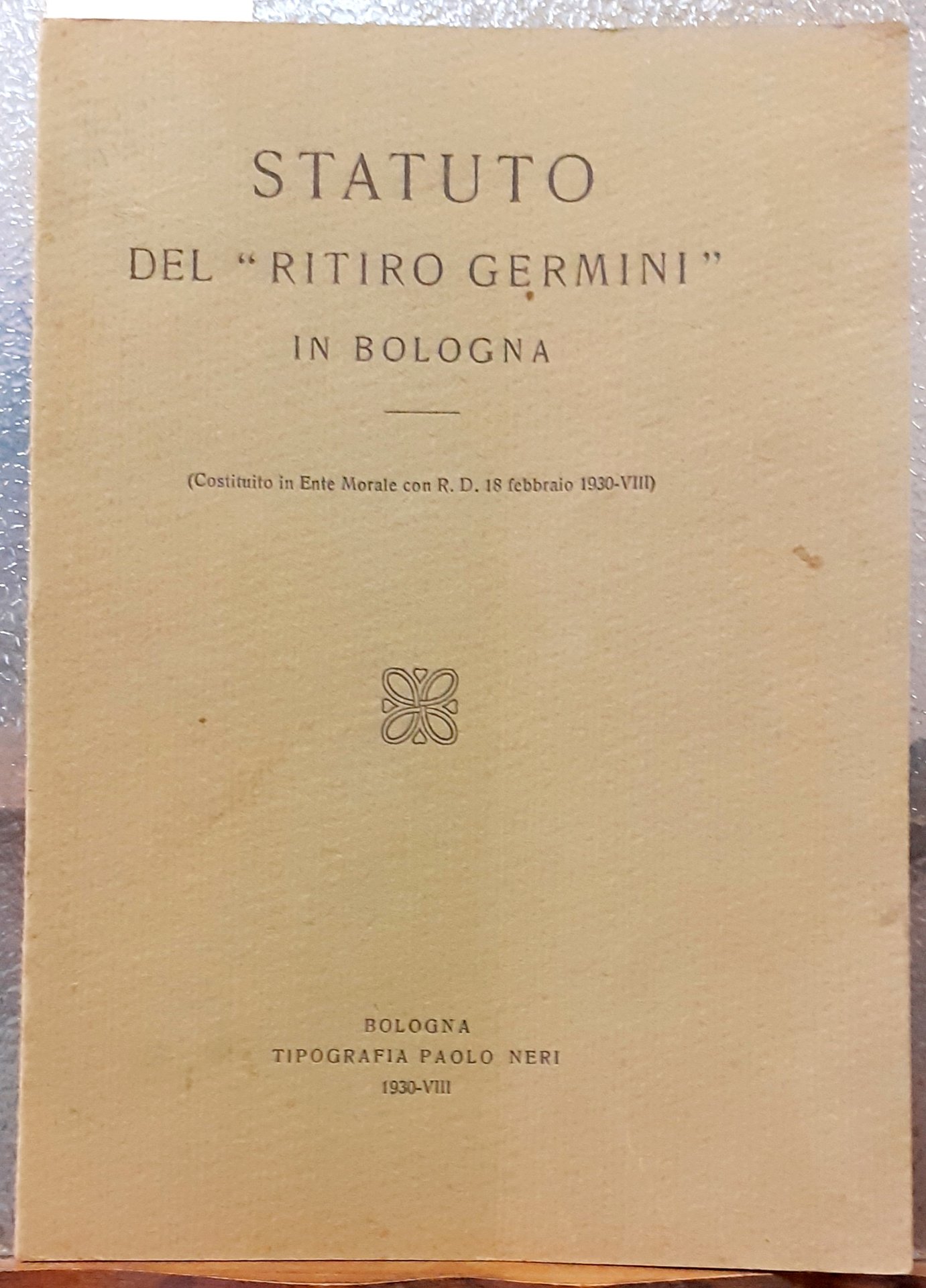 STATUTO DEL "RITIRO GERMINI" IN BOLOGNA.