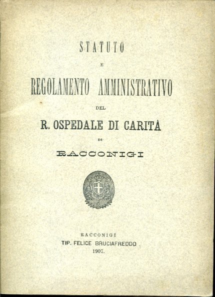 Statuto e regolamento amministrativo del R. Ospedale di Carità di Racconigi