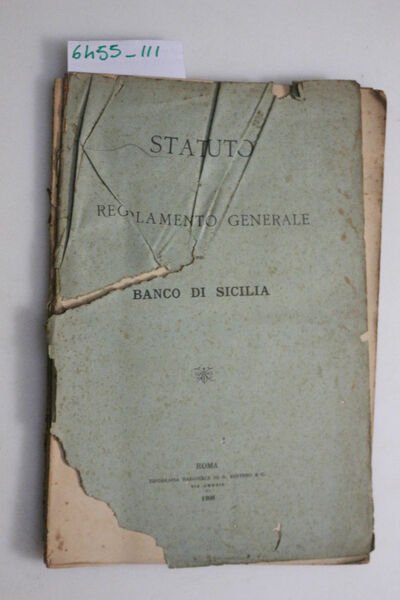 (Collana : -) Statuto del banco di sicilia - DETTAGLIO DELLE CONDIZIONI : La coperta è staccata e strappata; pagine ingiallite e slegate - (1.XII.1).