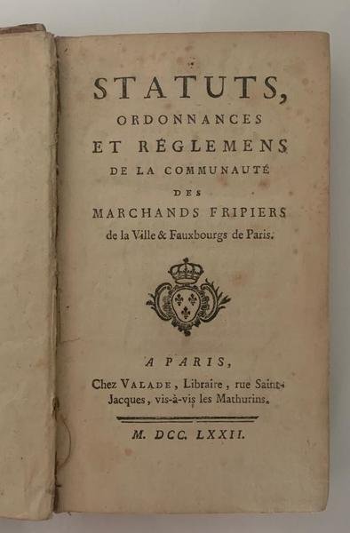 Statuts ordonnances et reglemens de la communautè de marchand fripiers de la ville de Paris