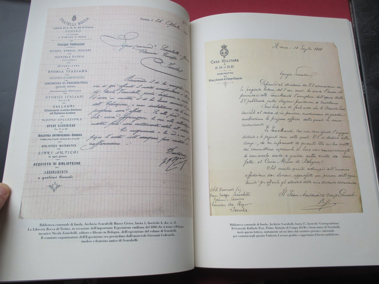 In - 4to ( misure 35x25 ), legatura editoriale con sovraccoperta illustrata, pp. ( 18 ) VI, 95 + 23 tavole fuori testo anche ripiegate e 6 tavole a colori nel testo riproducenti documenti d'epoca. Edizione di 500 esemplari numerati ( questo n. 301 ). Ristampa anastatica dell'edizione del 1887 a cura dell'Associazione Scarabeo. Unito: volume di 54 pagine che che documenta la presentazione dell'opera tenutasi a Imola, Palazzo Sersanti, 19 dicembre 2003.