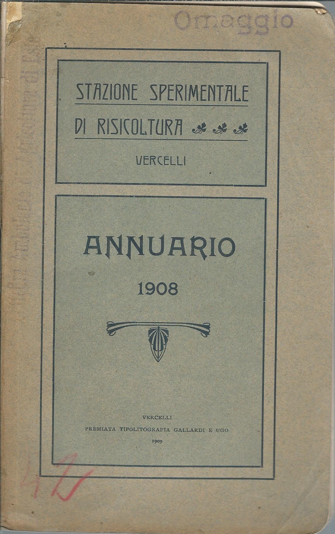 STAZIONE SPERIMENTALE DI RISICOLTURA - VERCELLI - ANNUARIO - 1908