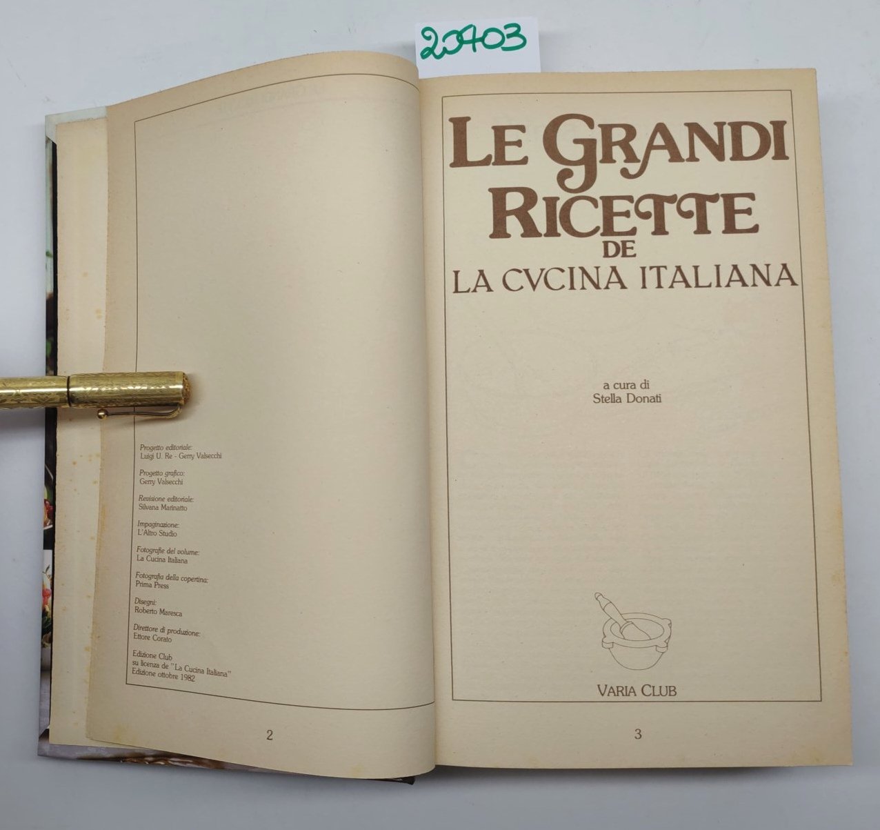 Stella Donati Le grandi ricette de La cucina italiana Varia Club 1982