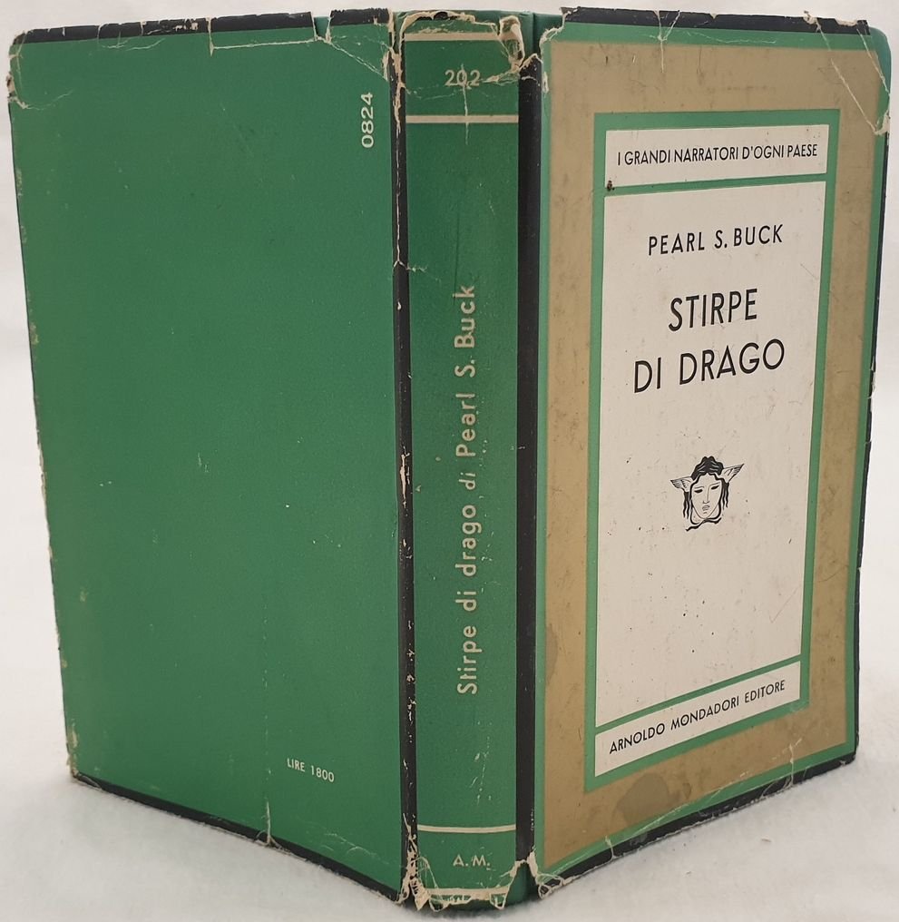 Edizione italiana del novembre 1963 del romanzo "Stirpe di drago" (Titolo originale "Dragon seed") dello scrittore Pearl S. Buck. Volume numero 202 della collana "Medusa". In ottime condizioni. Copertina editoriale con sovraccoperta in buone condizioni generali con lievi usure ai margini e dorso. Legatura in buone condizioni. Pagine in ottime condizioni con rare fioriture. In 8. cm 19,5x12,5. Pp. 439+(9). First italian edition of november 1963 of the novel "Stirpe di drago" (Original title "Dragon seed") by the writer Pearl S. Buck. Volume number 202 of the series "Medusa". illustration in the frontspice by Oscar Kokoschka. In good conditions. Editorial cover with dustjacket in good conditions lightly worn in the extremities. Binding in good conditions. Pages in good conditions with occasional foxing. In 8. cm 19,5x12,5. Pp. 439+(9)