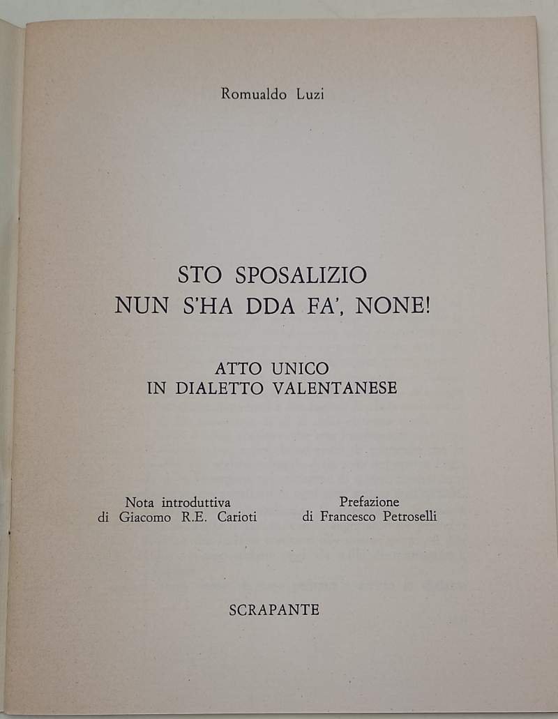 STO SPOSALIZIO NON S'HA DDA FA', NONE !-ATTO UNICO IN DIALETTO VALENTANESE(1974)