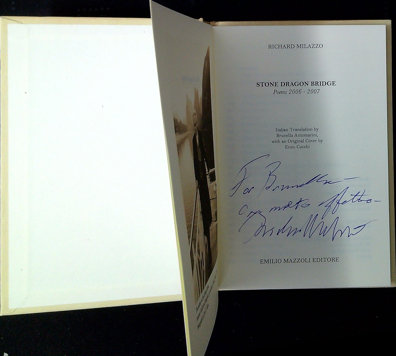 Richard Milazzo ; italian translation by Brunella Antomarini ; with an original cover by Enzo Cucchi Stone dragon bridge : poems 2006-2007. Modena, E. Mazzoli 2007, 115 p. : ill. ; 18 cm. Dedica autografa dell'autore al frontespizio (71355)