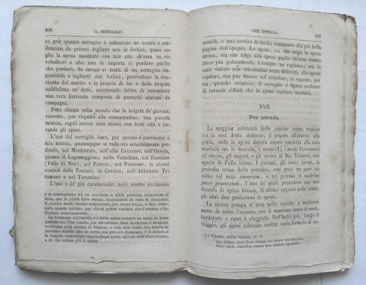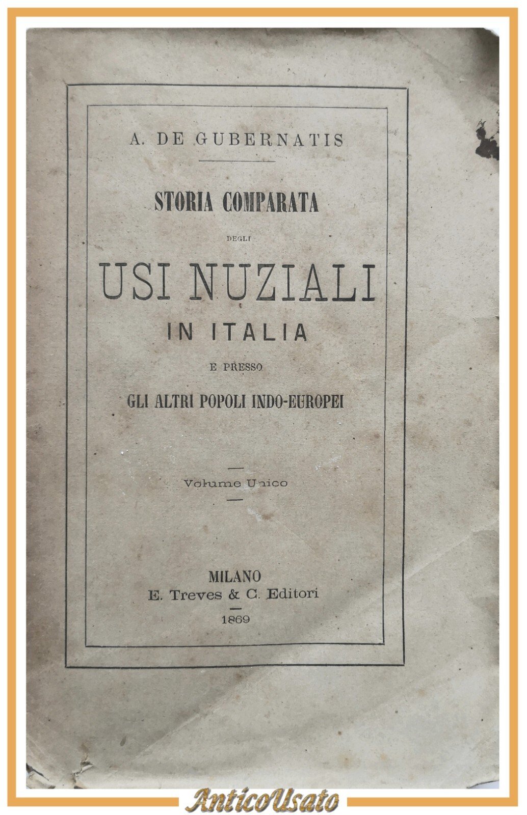 STORIA COMPARATA DEGLI USI NUZIALI IN ITALIA di De Gubernatis 1869 Treves Libro